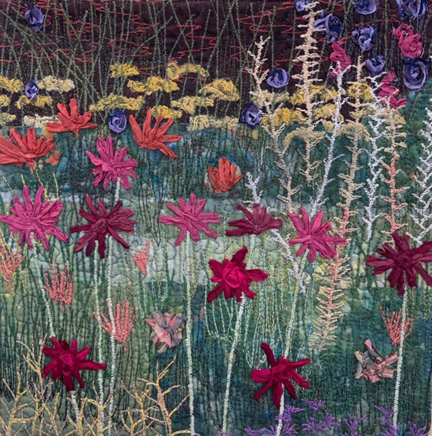 Fabric, thread: Thread painted art quilt