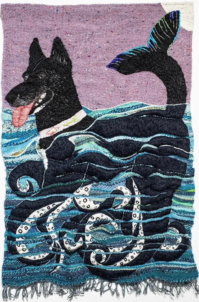 Natural and synthetic fiber: Hand stitched felt appliqué on a handwoven background
