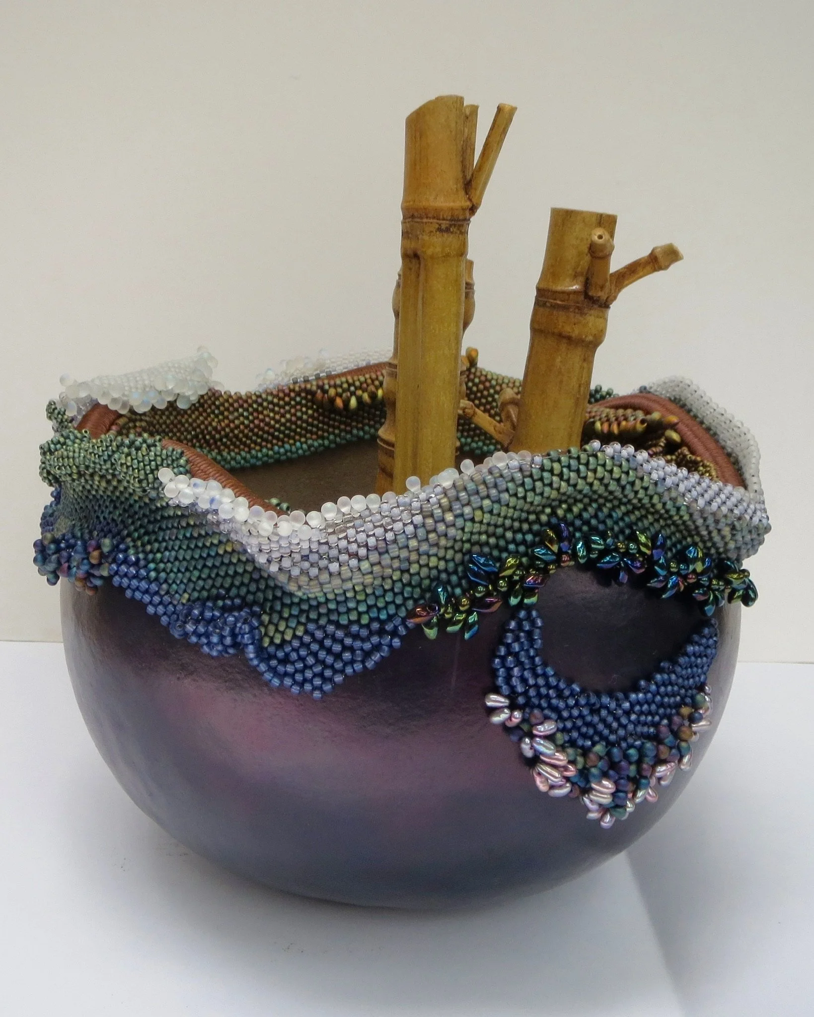 Mixed media: Beaded gourd vessel